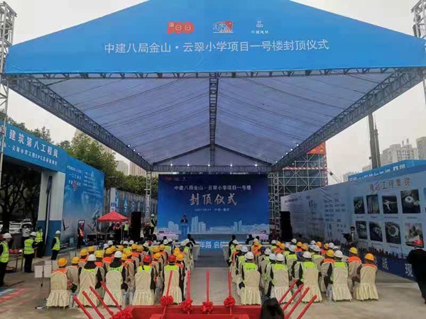 重慶兩江新區(qū)鴛鴦組團金山·云翠小學(xué)一期主體結(jié)構(gòu)順利完成封頂。中建八局供圖