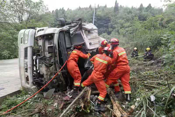 4月21日12時許,重慶市涪陵區(qū)蒿枝壩垃圾處理廠內(nèi)一灑水車因剎車失控側(cè)翻,一名駕駛員被困。其腹部以下被卡,意識模糊,胸口被吐出的鮮血染紅,同時,車輛還正發(fā)生漏油,情況緊急。