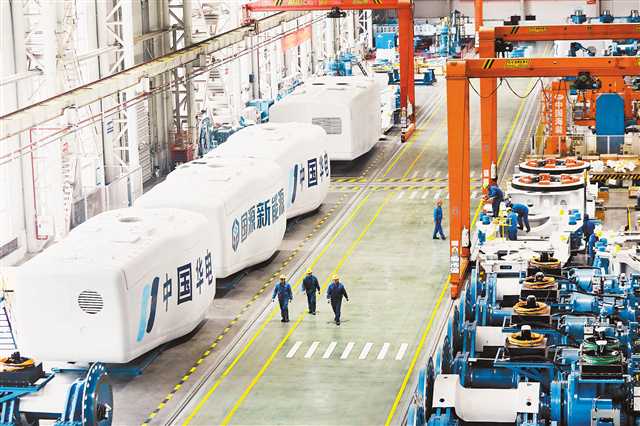 二○二一年一月八日,中國(guó)海裝廠房?jī)?nèi),技術(shù)人員正在緊張裝配風(fēng)電機(jī)組。(本報(bào)資料圖片)記者 羅斌 攝\視覺(jué)重慶