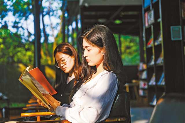 4月21日,南岸區(qū)南之山書店,讀者坐在面對森林的沙發(fā)上閱讀書籍。本版圖片均由首席記者 龍帆 攝/視覺重慶