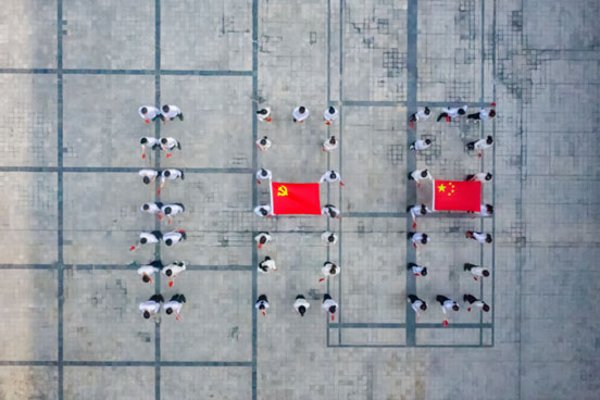 “我和我的祖國(guó),一刻也不能分割……”在兩江新區(qū)鴛鴦街道,擺成“100”圖案的青年代表列隊(duì)歌唱著《我和我的祖國(guó)》,獻(xiàn)禮建黨100周年。