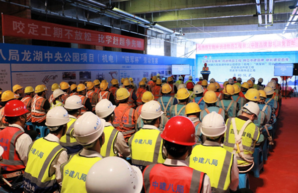 重慶龍湖中央公園項目,是重慶市渝北區(qū)的重點項目。為鼓舞全體建設(shè)者保質(zhì)保量完成建設(shè)任務(wù),中建八局西南公司安裝分公司別出心裁將勞動競賽和黨史學(xué)習(xí)教育結(jié)合起來,鼓勵黨員學(xué)史力行,帶動各競賽隊伍比學(xué)趕超,在勞動競賽中力爭上游,賽出水平,高質(zhì)量完成生產(chǎn)任務(wù)。項目部通過贈送黨史書籍、工地微黨課、主題觀影等活動,形成了從項目黨員到農(nóng)民工黨員再到職工群眾全覆蓋的學(xué)習(xí)氛圍。