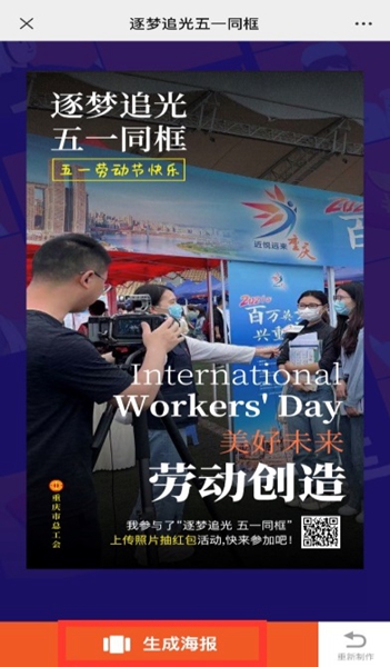 市民參與活動(dòng)還可以生成定制勞動(dòng)節(jié)主題海報(bào)。重慶市總工會(huì)供圖