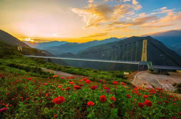 在九重天景區(qū)里,踩上懸掛式玻璃晃橋——攬月橋,能體會身旁空無一物,腳底萬丈懸崖的刺激感。在連天棧道,站在絕壁之巔,仰望天空,藍(lán)天白云似乎伸手可及,還能體驗懸崖秋千等刺激類游玩項目。