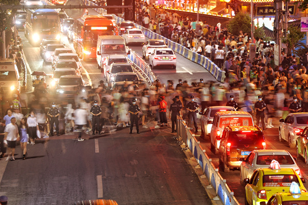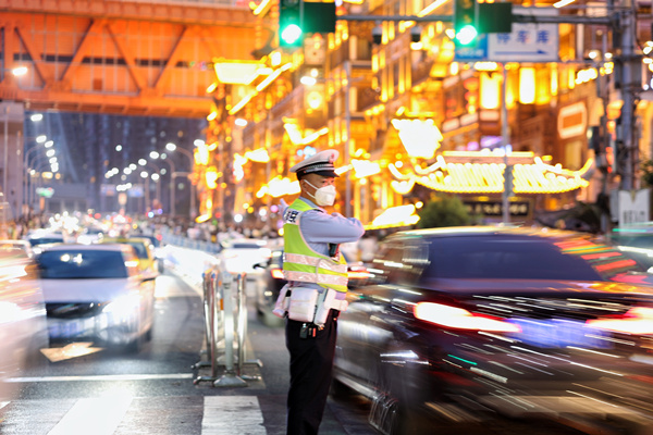 5月1日晚,渝中警方以轄區(qū)繁華商圈、車站碼頭、熱門景區(qū)等為重點(diǎn)部位,加強(qiáng)巡邏防控。在洪崖洞旅游核心景區(qū),警方根據(jù)景區(qū)周邊人流容量變化,在景區(qū)建筑、外圍環(huán)道及千廝門大橋設(shè)置三層封控線,沿線布置充足警力,擇機(jī)對應(yīng)啟動封控。