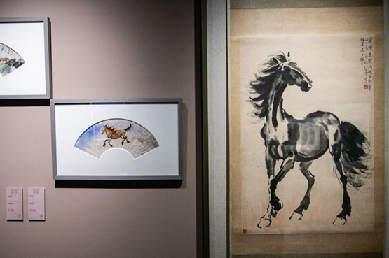 在“近現(xiàn)代及當(dāng)代大家藝術(shù)家家庭畫(huà)”篇章中,展出徐悲鴻家庭(徐悲鴻、徐慶平、徐驥)、楊先讓家庭(楊先讓、李念先、張達(dá)三等)、李苦禪家庭(李苦禪、李燕、孫燕華等)、韋江凡家庭(韋江凡、時(shí)玉梅、韋紅燕)、王琦家庭(王琦、王仲、王煒)、顏新元家庭(顏新元、劉雪純、顏開(kāi))等6個(gè)家庭成員68幅精品力作,6個(gè)家族領(lǐng)銜藝術(shù)家均為中國(guó)現(xiàn)當(dāng)代藝術(shù)杰出人物。展品涵蓋徐悲鴻的《會(huì)師東京》《受天柏鹿》《立馬》《鐘進(jìn)士》,李苦禪的《松濤棲鷹圖》《山鷲圖》,韋江凡的《草原馳駿》《秦川牛》,王琦的《古墻老藤》《嘉陵江上》,楊先讓的《青年周恩來(lái)》《我的恩師一徐悲鴻》,顏新元的《冬陽(yáng)疏影》《家家共賞窗前綠》等名作。