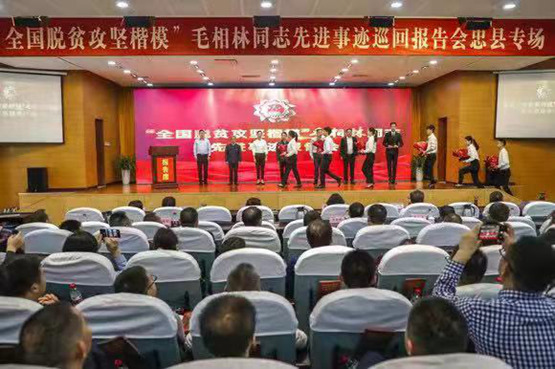人民網(wǎng)重慶5月10日電 近日,“全國(guó)脫貧攻堅(jiān)楷!泵嗔滞鞠冗M(jìn)事跡巡回報(bào)告會(huì)在重慶市忠縣舉行。1個(gè)多小時(shí)的精彩報(bào)告,讓忠縣廣大干部群眾聆聽(tīng)了感人至深的故事,現(xiàn)場(chǎng)掌聲不斷。