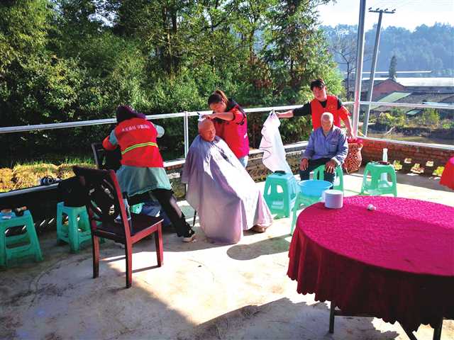 石溪鎮(zhèn)“從頭開始——義剪”志愿服務(wù)項(xiàng)目,為留守老人免費(fèi)理發(fā)