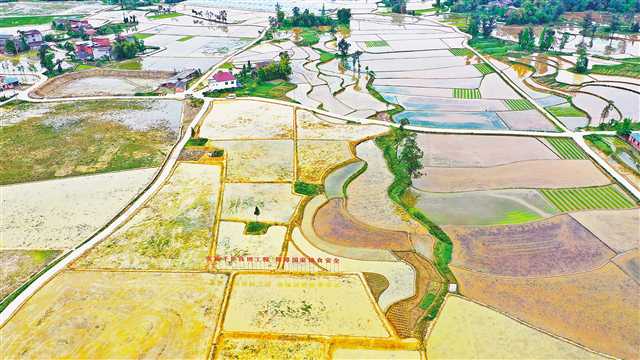 5月7日,梁平區(qū)星橋鎮(zhèn)兩路村,高標(biāo)準(zhǔn)農(nóng)田阡陌有序、整齊成片。農(nóng)田之上,村民們卷起褲腿,帶上斗笠,忙著填溝蓄水,為下一步插秧做好準(zhǔn)備。