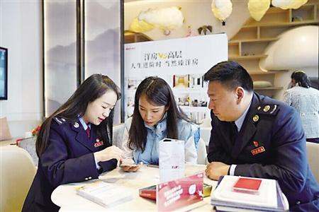 稅務(wù)人員輔導(dǎo)購房人在手機上完成契稅申報繳納。李林松 攝