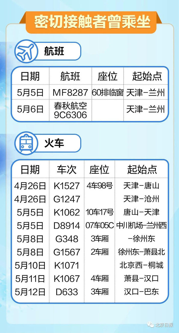 據(jù)公開報(bào)道,本輪疫情發(fā)生以來,各地發(fā)布了確診病例和密切接觸者的行程軌跡詳情,他們所乘坐的航班和火車班次如下,請(qǐng)乘坐這些航班和火車的人員及時(shí)向所在地社區(qū)(村委會(huì))報(bào)告。
