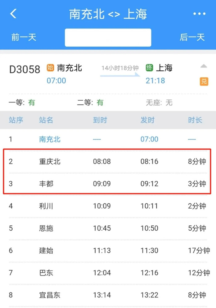值得注意的是,其中確診病例曾乘坐的5月8日D3058次列車由四川南充發(fā)車,開往上海,途經(jīng)重慶北站、豐都站。