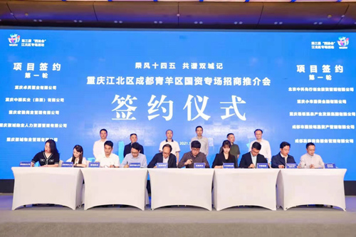 在重點(diǎn)項(xiàng)目推介活動(dòng)上,江北區(qū)、青羊區(qū)國企代表分別對(duì)明月山-御臨河生態(tài)文化旅游區(qū)、科技金融中心、青羊總部經(jīng)濟(jì)基地項(xiàng)目、四川國際創(chuàng)新設(shè)計(jì)產(chǎn)業(yè)園等項(xiàng)目進(jìn)行了推介,涵蓋文旅、康養(yǎng)、商業(yè)街區(qū)、園區(qū)、總部基地、地產(chǎn)開發(fā)等多個(gè)產(chǎn)業(yè)。推介會(huì)上,中科江北基金項(xiàng)目、中國成都人力資源產(chǎn)業(yè)園等20個(gè)重點(diǎn)項(xiàng)目完成簽約,簽約總金額達(dá)46億元。
