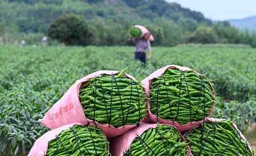 5月17日,在廣西柳州市柳東新區(qū)雒容鎮(zhèn)坭橋村,村民在地里采摘辣椒。
