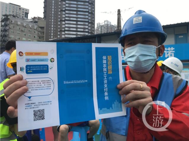 5月19日,重慶市人力資源和社會保障局勞動保障監(jiān)察處、重慶市勞動保障監(jiān)察總隊聯(lián)合渝中區(qū)人力資源和社會保障局、渝中區(qū)住房和城市建設(shè)委員會在大田灣體育場保護與利用工程(現(xiàn)場)開展《保障農(nóng)民工工資支付條例》宣傳進工地活動,對熱點問題一一進行答疑,讓農(nóng)民工朋友能夠安“薪”工作。