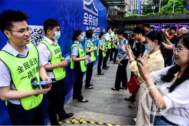 現(xiàn)場(chǎng)以“全民反詐·一戰(zhàn)到底”為主題,邀請(qǐng)警方反詐專家、經(jīng)驗(yàn)豐富的銀行從業(yè)人員等為群眾講解反詐知識(shí),還穿插以反詐為主題的趣味活動(dòng),通過現(xiàn)場(chǎng)與網(wǎng)絡(luò)同步展開,吸引了線上線下10余萬人關(guān)注。