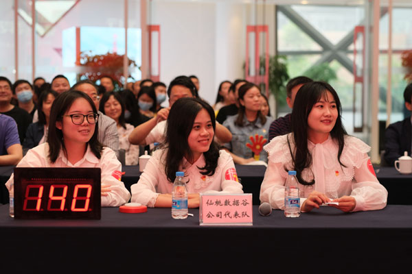 “永遠(yuǎn)跟黨走·強(qiáng)國(guó)伴我行”黨史知識(shí)競(jìng)賽現(xiàn)場(chǎng)。仙桃數(shù)據(jù)谷公司供圖