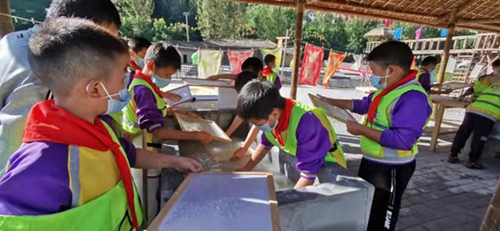 青少年參與研學(xué)活動(dòng),正在體驗(yàn)造紙。云陽(yáng)縣文旅委供圖