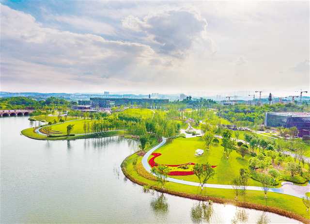 重慶兩江協(xié)同創(chuàng)新區(qū)明月湖環(huán)湖步道近日建成投用。這條9公里的環(huán)湖步道建有“玲瓏初見”“明月渡”“明月坊”等十六景,串聯(lián)起多所高校院所,勾勒出一幅“科技+生態(tài)”“產(chǎn)城景”融合的山水智慧之城圖景。圖為5月18日拍攝的明月湖環(huán)湖步道。記者 張錦輝 攝/視覺重慶