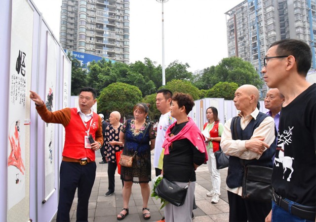 5月20日,重慶市第八屆紅櫻桃“冬日針愛——水墨丹青繪針愛”書畫公益巡展活動在我區(qū)九龍廣場舉行。140余幅愛心書畫作品吸引了眾多市民駐足觀看。