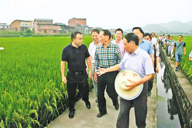 “袁老興致很高,他一邊興致勃勃地參觀雜交稻示范基地,一邊與農(nóng)民和本地專家交流!彼蚊粽f,“當(dāng)他聽到示范片的穎花數(shù)(即谷子)達(dá)到每畝4000多萬時(shí),顯得非常高興,并表示了肯定,認(rèn)為‘在南川這樣的溫光條件下,能達(dá)到這樣的數(shù)據(jù),已非常不錯(cuò)’!