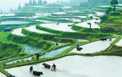 當(dāng)日,洋洞村村民牽著近千頭耕牛走進(jìn)田間參加活動(dòng)。洋洞村農(nóng)耕文化保存完好,村民至今仍保持著“日出而作,日落而息”的傳統(tǒng)農(nóng)耕習(xí)慣。
