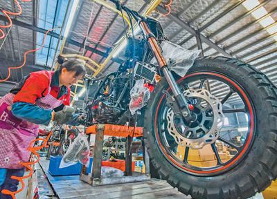 重慶一家摩托車制造企業(yè)車間里,工作人員正在生產(chǎn)線上加緊趕制出口訂單產(chǎn)品。該企業(yè)產(chǎn)品全部出口中美洲、南美洲、歐洲、非洲等地。