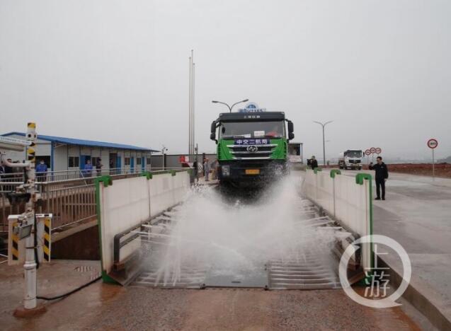“為確保渣車進出場時車輪、車身、車牌干凈見本色,我們引進配備了一套車輛自動沖洗設(shè)施!