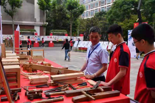 木工和書籍作品展示。徐悲鴻中學(xué)供圖