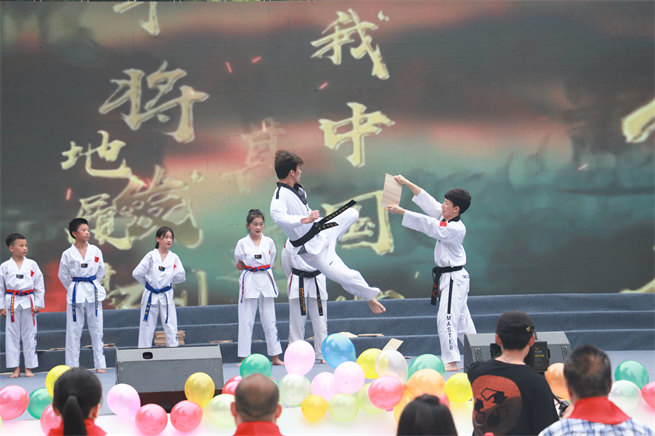 圖為活動(dòng)現(xiàn)場(chǎng)進(jìn)行的跆拳道表演。張皓瑋攝