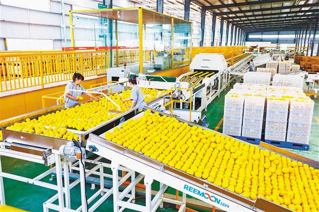 潼南區(qū)匯達(dá)檸檬生產(chǎn)車間的果實分選線。(市農(nóng)業(yè)農(nóng)村委供圖)