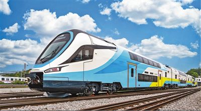 中國(guó)首列出口歐洲雙層動(dòng)車組5月31日在位于湖南株洲的中車株機(jī)公司下線。這是我國(guó)自主研制的滿足歐盟鐵路互聯(lián)互通技術(shù)規(guī)范的雙層動(dòng)車組,最高運(yùn)營(yíng)時(shí)速200公里,具有載客量大、靈活編組、安全可靠、智能舒適等特點(diǎn),將在奧地利、德國(guó)、匈牙利等5個(gè)國(guó)家鐵路線上運(yùn)行。