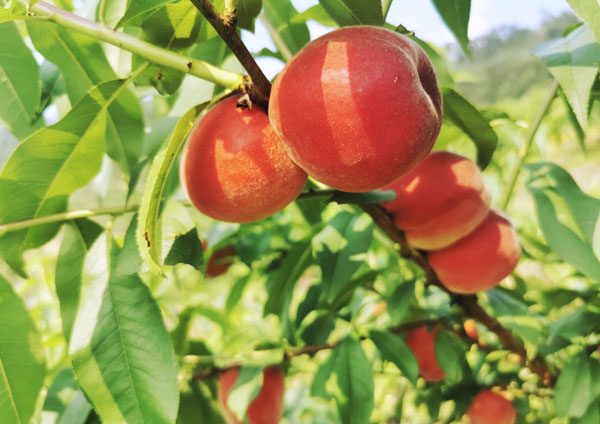 桃子掛滿枝頭。東溫泉鎮(zhèn)供圖