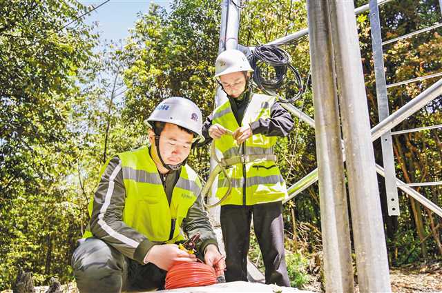 重慶移動(dòng)石柱分公司的工作人員在漆樹坪基站進(jìn)行日常巡檢。(攝于5月6日)記者 何賽格 攝/視覺重慶