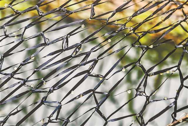 附著在人工魚巢保護(hù)網(wǎng)上的魚卵。