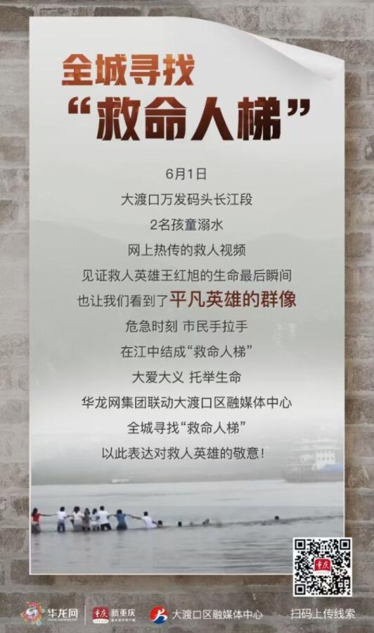 6月4日,華龍網(wǎng)--新重慶客戶端發(fā)布《這座城很多好心人!請(qǐng)轉(zhuǎn)發(fā)尋找“救命人梯”》一文在社會(huì)上引起強(qiáng)烈反響,不少熱心市民積極參與。到目前為止,已經(jīng)找到了6名平凡英雄。