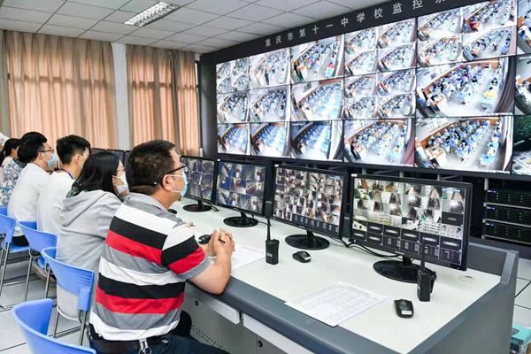 重慶十一中考點監(jiān)控室,對考場進行實時監(jiān)控。鄒樂攝