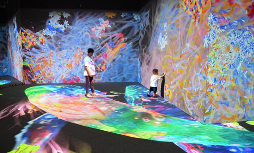 6月6日,小朋友在科技藝術(shù)節(jié)上的“teamLab Future Park”未來游樂園中體驗(yàn)交互動畫。