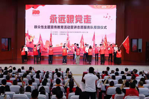 人民網(wǎng)重慶6月8人電 近日,為推動黨史學(xué)習(xí)教育走深走實,永川區(qū)開展“永遠(yuǎn)跟黨走”群眾性主題宣傳教育活動,成立了新鄉(xiāng)賢、平安護(hù)航、老黨員、紅燭光、天使在身邊、青年等8支宣講志愿服務(wù)隊,并向宣講志愿服務(wù)隊頒授隊旗。
