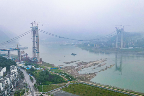 郭家沱長(zhǎng)江大橋及南延伸段項(xiàng)目是重慶快速路“六縱線”重要組成部分,縱貫?zāi)习秴^(qū)和兩江新區(qū)。其中,郭家沱長(zhǎng)江大橋全長(zhǎng)1403.8米,主跨720米,是中國(guó)目前最大跨度公路軌道兩用懸索橋,由中建橋梁有限公司負(fù)責(zé)建設(shè)。