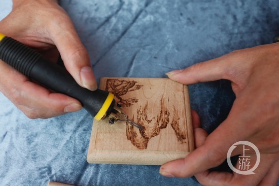 烙畫又稱火筆畫,這種中國(guó)傳統(tǒng)藝術(shù)珍品因用火燒熱烙鐵在物體上熨出烙痕作畫得名。區(qū)級(jí)非遺柏木坊烙畫傳承人王方明介紹說(shuō),“烙畫始于西漢,距今兩千多年,分為南北兩派。我們現(xiàn)在主要傳承的技藝是在宣紙、竹木上面作畫,它有種浮雕感覺(jué),而且不會(huì)掉色,比筆墨保存時(shí)間更長(zhǎng)!