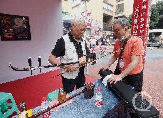 76歲的區(qū)級(jí)非遺應(yīng)月齋二胡傳統(tǒng)制作技藝傳承人傅應(yīng)康的展位也吸引了不少市民,老先生滿頭白發(fā),正在專心制作一把二胡,“二胡的結(jié)構(gòu)是完整的,制作最關(guān)鍵在于細(xì)致的銜接,讓它不但成為一件樂(lè)器,更是一件賞心悅目的藝術(shù)品,兼具實(shí)用性和觀賞性。”
