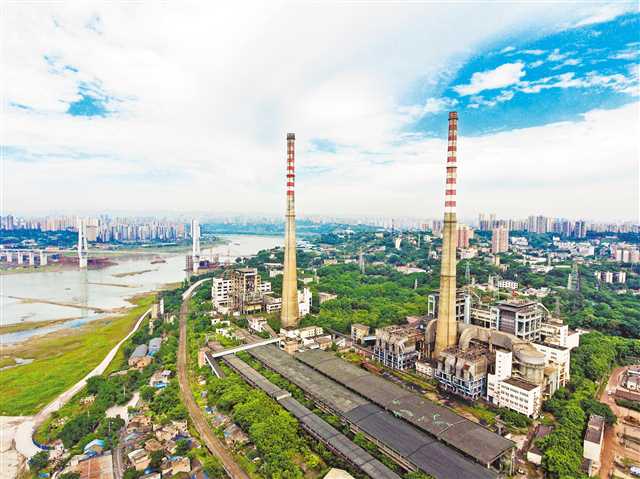 6月4日,位于九龍坡黃桷坪的重慶發(fā)電廠老廠區(qū)。藍天白云下,兩根240米高的煙囪靜靜屹立,挺拔的身姿記錄著過去的輝煌。