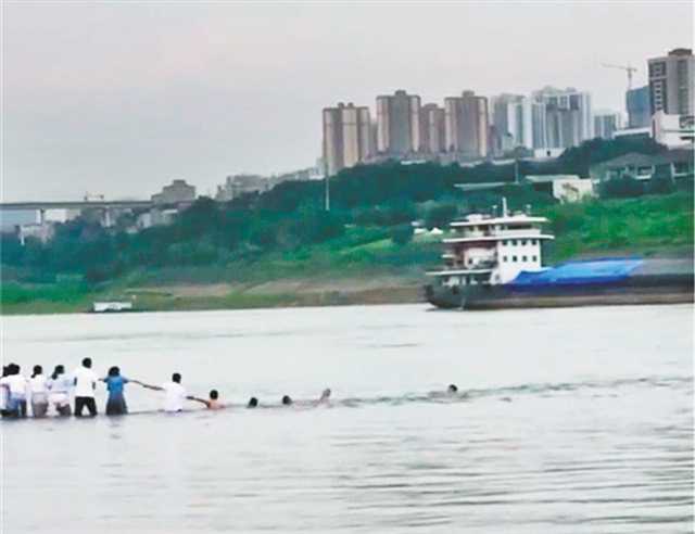 哪怕是明顯感受到巨大危險(xiǎn),但江灘上前一刻還在嬉鬧的人群,竟然在不到2分鐘內(nèi),組成了十幾人、長(zhǎng)達(dá)二三十米的“人鏈”。