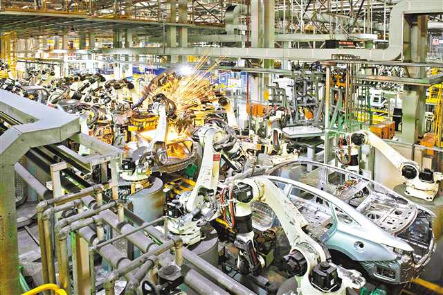 位于重慶兩江新區(qū)的長(zhǎng)安汽車(chē)兩江基地乘用車(chē)工廠(chǎng),機(jī)器人焊接生產(chǎn)線(xiàn)在高速運(yùn)轉(zhuǎn)。(攝于2020年12月30日)記者 張錦輝 攝/視覺(jué)重慶