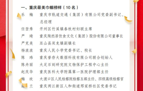 重慶最美巾幗榜樣名單出爐 共10人上榜