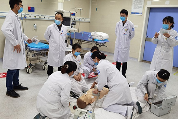 另一方面,科室內(nèi)時(shí)常進(jìn)行團(tuán)隊(duì)技能提升培訓(xùn),以訓(xùn)練科室內(nèi)人員的“排兵布陣”能力。培訓(xùn)內(nèi)容包括心肺復(fù)蘇術(shù)、海姆立克術(shù)、過(guò)敏性倒地和電動(dòng)洗胃等實(shí)踐技能操作。