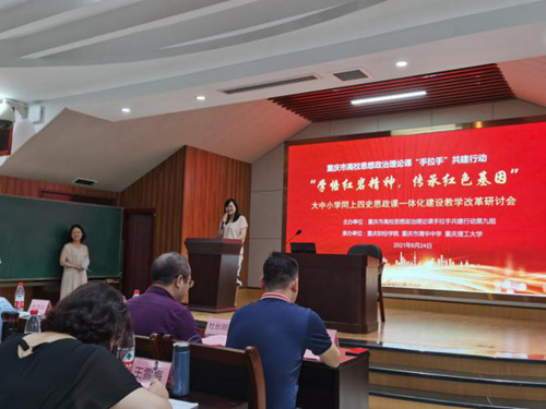 人民網(wǎng)重慶6月26日電 為慶祝中國(guó)共產(chǎn)黨成立100周年,大力推進(jìn)“四史”教育融入大中小學(xué)思政課堂,積極探索大中小學(xué)思政課一體化建設(shè)的推進(jìn)路徑,6月24日,由重慶財(cái)經(jīng)學(xué)院馬克思主義學(xué)院組織的重慶市高校思想政治理論課“手拉手”共建行動(dòng)第九組,攜手重慶清華中學(xué)、重慶理工大學(xué),在位于巴南區(qū)的重慶清華中學(xué)共同舉辦了“學(xué)悟紅巖精神 傳承紅色基因”大中小學(xué)同上“四史”思政課一體化建設(shè)教學(xué)改革研討會(huì)。