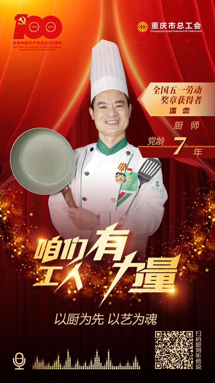我是全國五一勞動獎?wù)芦@得者潘戀,入黨7年了,我是一名廚師,傳承傳統(tǒng)烹調(diào)技藝的信念給了我力量,讓我一直走在探索美食文化、追求烹飪藝術(shù)的路上。(胡虹、龔祉嫻)