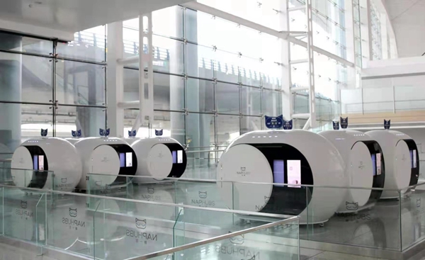 為了最大程度上滿足旅客在樓內(nèi)休息和放松的需求,在原有休閑娛樂(lè)業(yè)態(tài)基礎(chǔ)上,引入了按摩椅、休息艙,按摩椅兼具充電功能;睡眠艙內(nèi)多功能按摩沙發(fā)、數(shù)字電視、充電插座、無(wú)線網(wǎng)絡(luò)等設(shè)施一應(yīng)俱全,為旅客的臨時(shí)休息提供全面的保障。